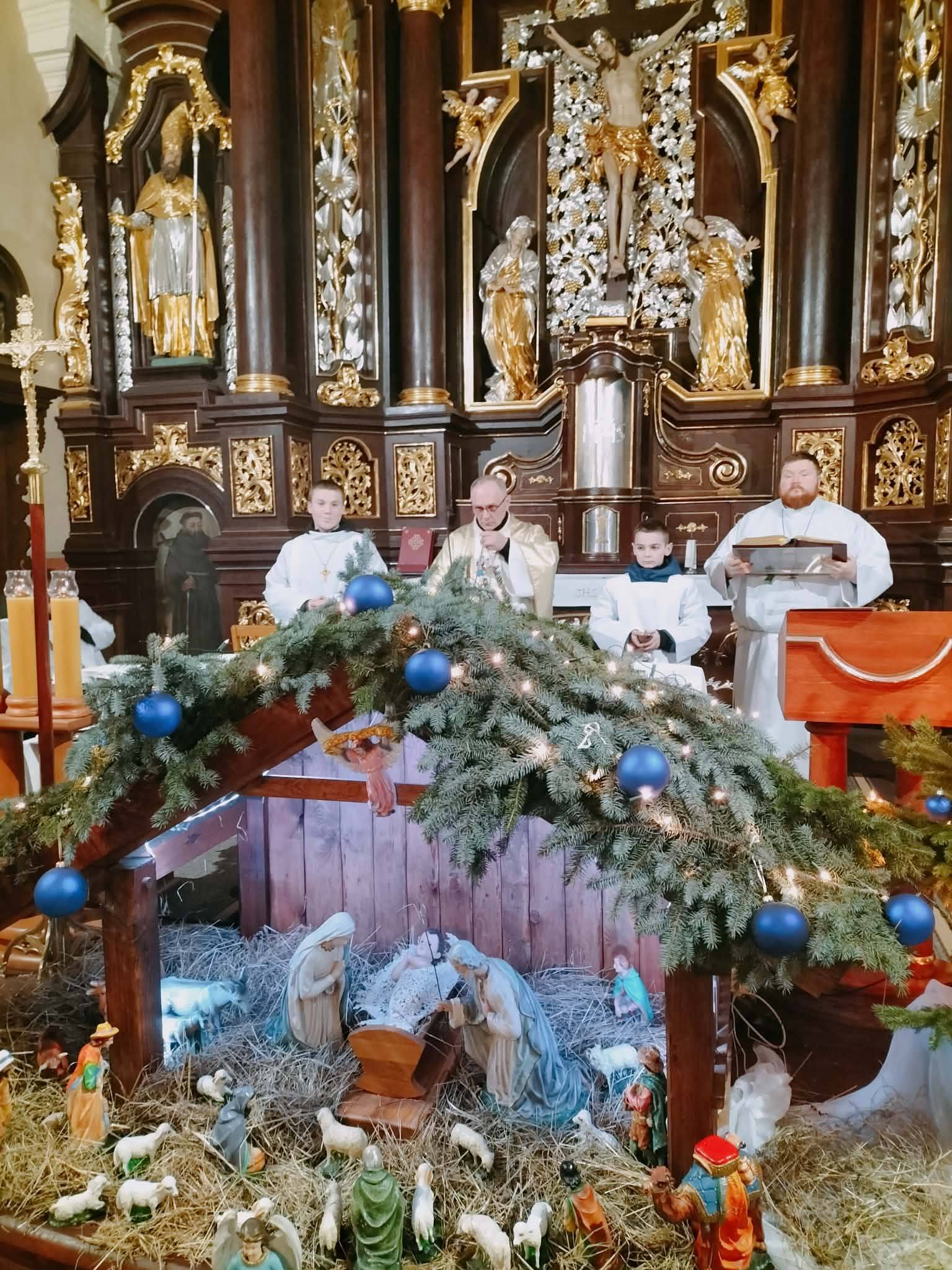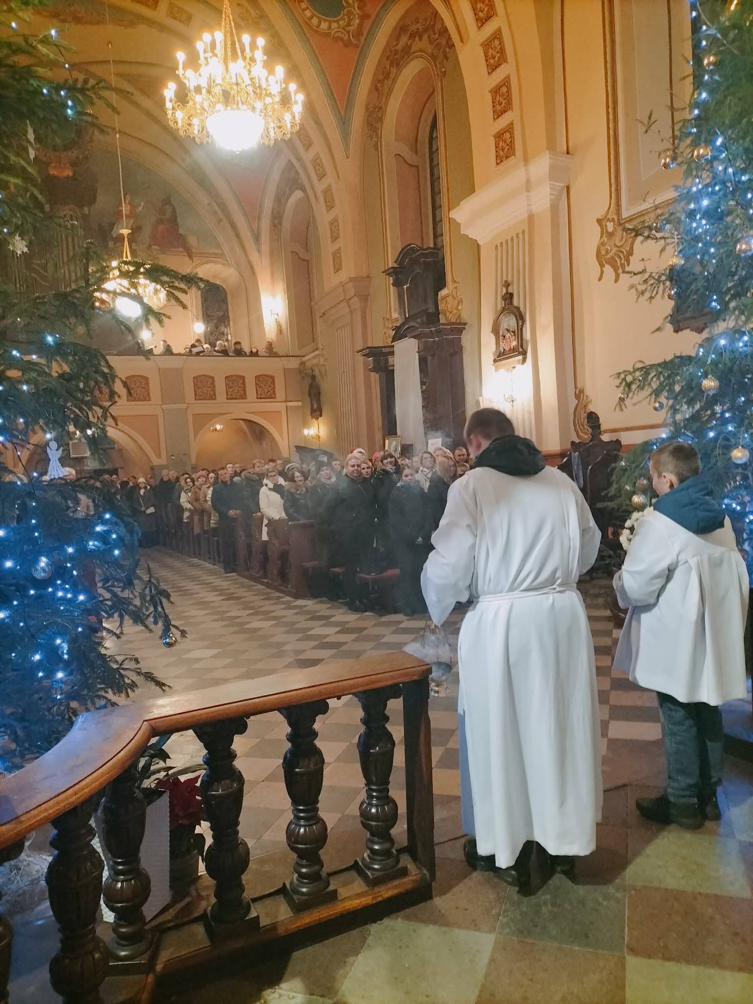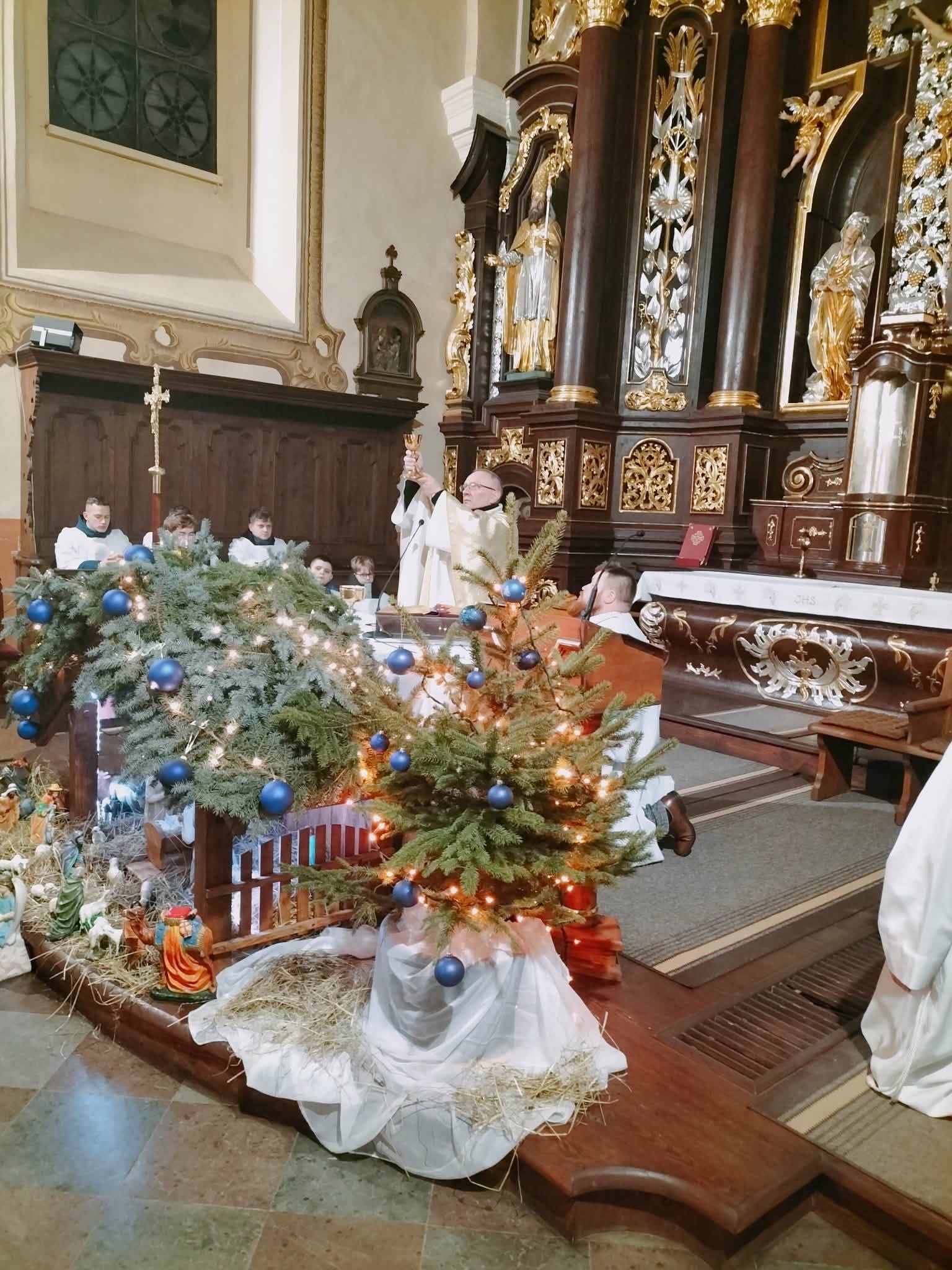 Święta Bożego Narodzenia rozpoczęły się tradycyjną pasterką na początku której Dzieciątko Jezus zostało położone w przygotowanym żłóbku. Uroczystą liturgię poprzedziło czuwanie kolędowe prowadzone przez naszą scholę. Natomiast w trakcie liturgii rozbrzmiewały głosy naszego chóru. W trakcie homilii ks. Proboszcz zwrócił uwagę, że Pan Jezus znajdował się pod czułymi rękoma Maryi i Józefa, ale również przeżywał chwile grozy, gdy okrutne ręce Heroda chciały odebrać Jemu życie. W tym kontekście pytał o nasze ręce, o nasz stosunek do Jezusa. Liturgia zakończyła się podziękowaniami dla osób zaangażowanych w przygotowanie tegorocznych Świąt.