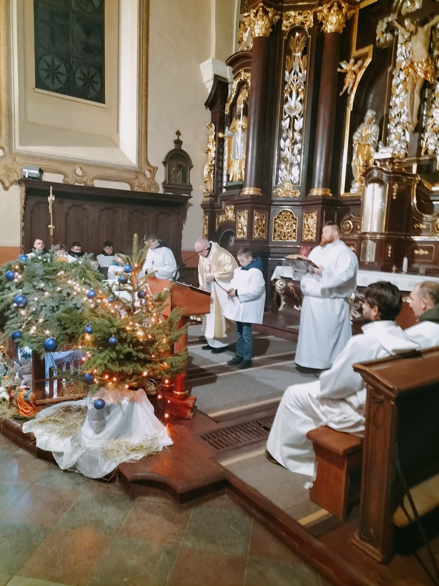 Święta Bożego Narodzenia rozpoczęły się tradycyjną pasterką na początku której Dzieciątko Jezus zostało położone w przygotowanym żłóbku. Uroczystą liturgię poprzedziło czuwanie kolędowe prowadzone przez naszą scholę. Natomiast w trakcie liturgii rozbrzmiewały głosy naszego chóru. W trakcie homilii ks. Proboszcz zwrócił uwagę, że Pan Jezus znajdował się pod czułymi rękoma Maryi i Józefa, ale również przeżywał chwile grozy, gdy okrutne ręce Heroda chciały odebrać Jemu życie. W tym kontekście pytał o nasze ręce, o nasz stosunek do Jezusa. Liturgia zakończyła się podziękowaniami dla osób zaangażowanych w przygotowanie tegorocznych Świąt.