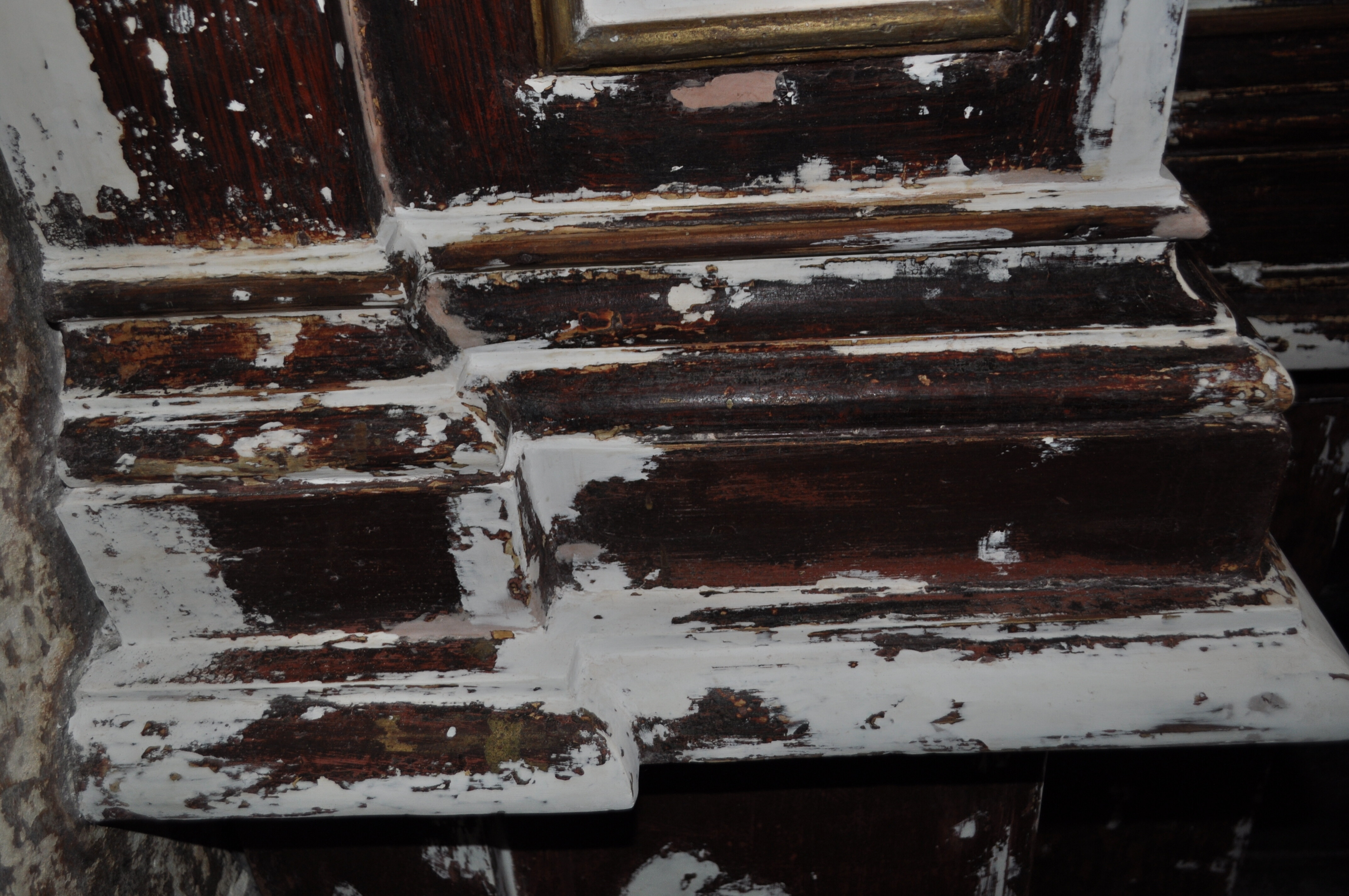 I etap prac przy ołtarzu Przemienienia Pańskiego dotyczył elementów architektonicznych ołtarza (bez mensy) polichromowanych barwnie i pozłacanych w partiach gzymsów. Najpierw przeprowadzono konserwację techniczną powodującą zwalczenie grzybów i owadów w zdezintegrowanym drewnie oraz wzmocnienie jego struktury po wcześniejszym podklejeniu ewentualnych pęcherzy, łusek i odspojeń. Mączka drzewna została usunięta. Następnie zostały odtworzone i zrekonstruowane brakujące i zniszczone elementy drewna włącznie z naprawami konstrukcyjnymi. W dalszej kolejności zostały oczyszczone powierzchnie pierwotnej malatury barwnej i złoconej z warstw szpachli, kitów, przemalowań olejnych, goldmetalu, zabezpieczeń, kurzu i brudu. Uzupełnione zostały mniejsze ubytkii drewna oraz gruntu wydobywając finezję.